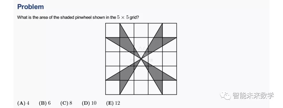 再看一道更难一点的面积题,这是2017年AMC 8的压轴题: